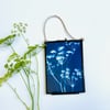 This beautiful double glass rustic black metal frame is a lovely finish to this original mini cyanotype of the wild parsnip flower.