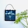 This beautiful double glass rustic black metal frame is a lovely finish to this original mini cyanotype of the wild parsnip flower.